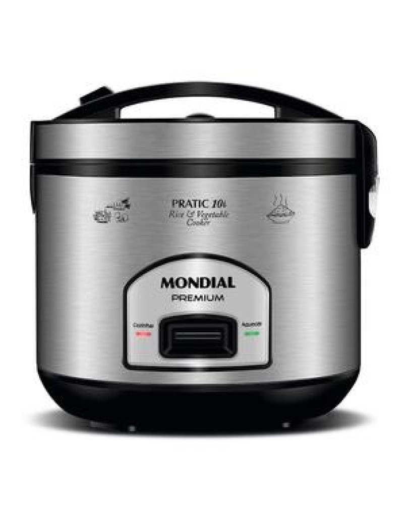 Panela elétrica mondial pratic 10i pe-42-10x panela elétrica de arroz-127v-preto/inoxgrande, com capacidade para 10 xícaras de arroz, a panela elétrica de arroz também cozinha outros pratos a vapor, sendo mais saudável. A cuba antiaderente não gruda e é mais fácil de limpar. ...